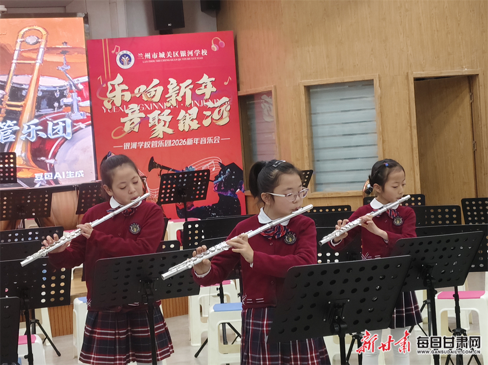 每日甘肃网讯 近日,银河学校“星澜”管乐团首次正式演出暨新年音乐会温情启幕。活动采用“线下演出+线上直播”双模式,邀请家长及部分同学现场观演,同时为无法到场的亲友搭建云端通道,实现家校跨空间共赏音乐盛宴。