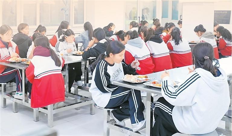 沙雅三中食堂里,学生们在吃晚饭。