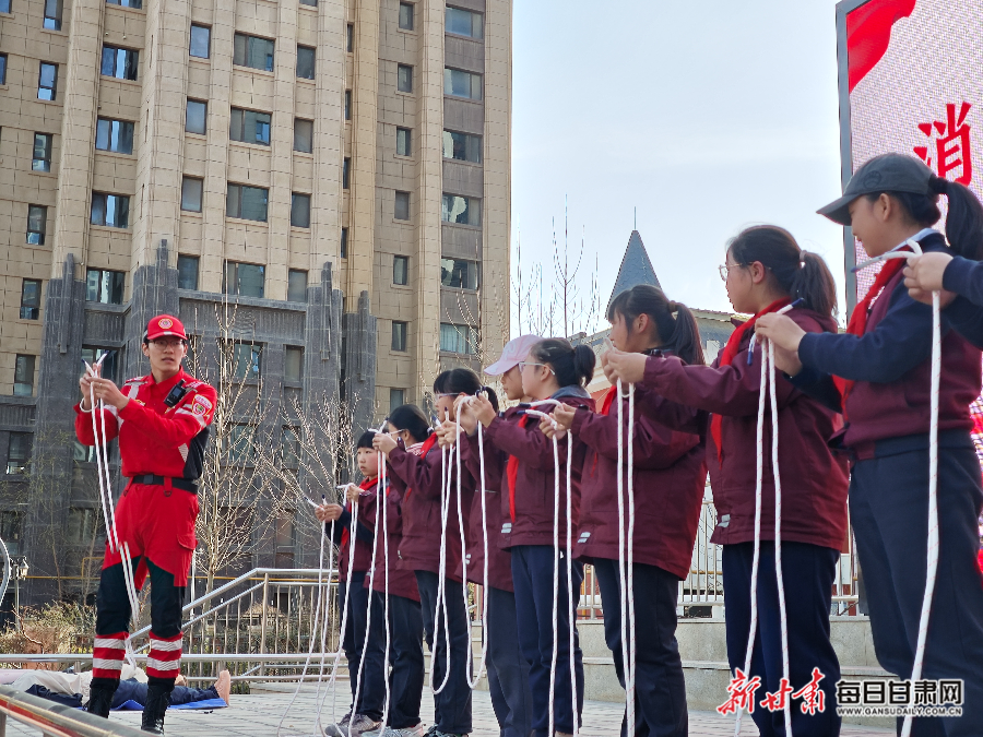 活动现场设置多个实训体验区,各班级有序分组轮换参与学习。在心肺复苏实训区,教官细致讲解并示范胸外按压、人工呼吸标准动作,指导师生利用模拟人反复练习,同步普及AED除颤仪的使用规范;在消防结绳区,师生们认真学习多种实用逃生绳结的系法技巧,反复实操巩固,熟练掌握逃生关键技能;烟雾逃生体验区高度还原火灾现场环境,师生们弯腰捂鼻、快速有序疏散,并现场操作灭火器,掌握初期火灾扑救方法。